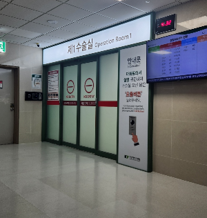 회복실 들어갈 때는 모자 쓰고 비닐 옷 입고 신발도 갈아 신어야 합니다.